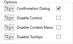 These tools are configured on an individual basis using each widget's properties dialog. There is no global setting for all. Options will vary by widget as appropriate. For example, there is no need of a confirmation dialog in a widget that does not provide operator control.