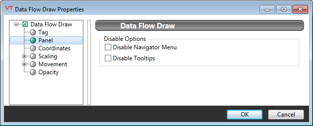 The properties dialog for the widget. As shown, the only configurable options are to disable tooltips and the context menu.