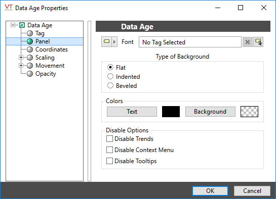An example of a configured properties dialog for the Data Age widget: