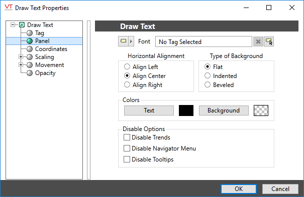 Select one of the font tags (or parameter linked to a font tag) that you wish to use to display the text. The display will use the default system font if you do not select a font tag.