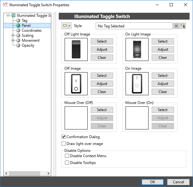 Similar to the Off Light Image and Off Image. Selects the light and lens images to display when the toggle is in position one.