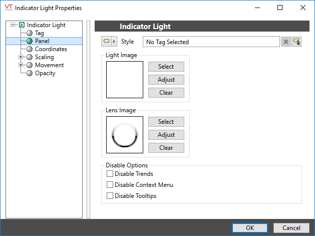 Indicator Lights can take many forms. Each form is composed of a light and a frame. You can select different lights and frames for each indicator that you have drawn, mixing and matching the pieces.