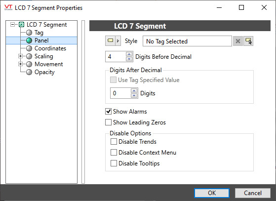 If linked to an I/O and Calculation tag, you can choose to use the current Digits after Decimal setting from the tag's configuration instead.