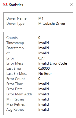 The Show Stats button will display the following information about a Mitsubishi driver tag.