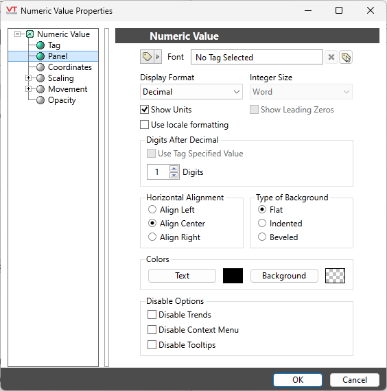 The Numeric Value widget is used to display the current value of any of a tag as a number. Units (if any) will be displayed, depending on how you configure the object.