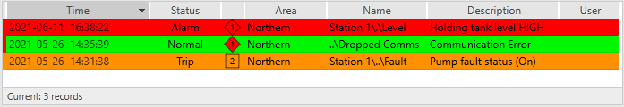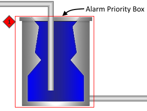 The box is not visible for alarms that are unacknowledged but no longer active unless the property AlarmPriorityIndicatorShowNormalUnacked is set to 1. (Note that "trip" alarms are never in an active state.) The icon is always displayed when the alarm is shelved or disabled.