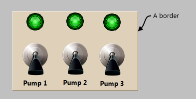 Borders are most often used to provide a visual indication to operators that a set of controls have some common purpose. Borders can appear raised or sunken relative to the rest of the page, and can be transparent or shaded.