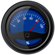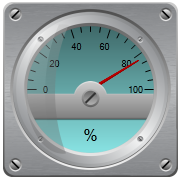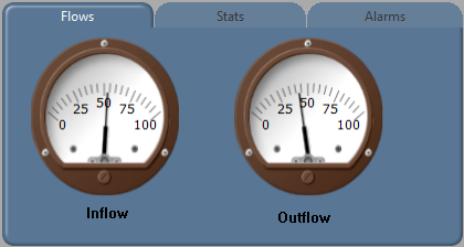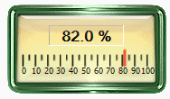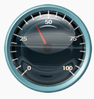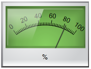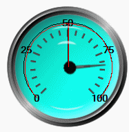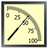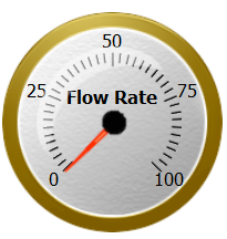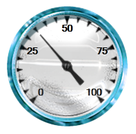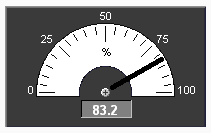 The Aqua Gauge widget represents the associated tag's value as a photorealistic meter, displaying both labeled major divisions and unlabeled minor divisions, the dial of which fluctuates according to the tag's value.