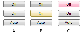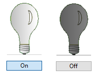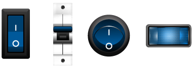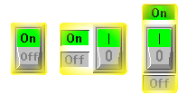 A variety of switch images are available in the Selector Switches images group. A few of the available choices are shown here (for every On image there are matching images for the Off state and the Invalid state, drawn in the same style).