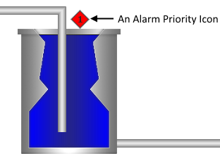 The icon is not visible for alarms that are unacknowledged but no longer active unless the property AlarmPriorityIndicatorShowNormalUnacked is set to 1. (Note that "trip" alarms are never in an active state.) The icon is always displayed when the alarm is shelved or disabled.