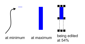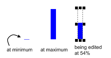 The Bottom Bar widget is used to display a tag's value as a vertical bar, the length of which increases from the top towards the bottom as the tag’s value increases. When the tag’s value is at a minimum, the bar will be shown as a thin line at the top of its range. When the tag’s value reaches its maximum, the widget will be displayed as a rectangle, filling the range.
