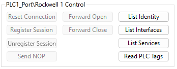 The Rockwell Control tag widget creates a panel of controls that can be used to send output to the hardware associated with a Rockwell driver tag.