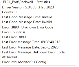 The Rockwell Statistics widget is used to create a beveled display, listing the statistics about the communications between VTScada and the associated hardware.