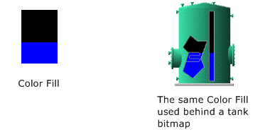The Color Fill tag widget is used to draw a tag as an animated bar (Bar Color) that graphically illustrates the value of the associated tag against a background color (Unfilled Color).