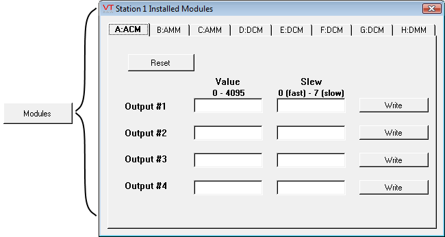 The Data Flow Station Draw tag widget is used to create a button that an operator may click to view information about the modules that have been installed at the physical RTU being represented by the associated tag. The contents of this window will vary according to the station's installed modules.