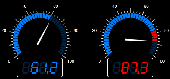 The Pressure Gauge widget represents the associated tag's value as radial meter.