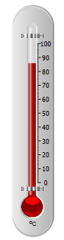 The Thermometer widget represents the associated tag's value as a photorealistic alcohol thermometer.