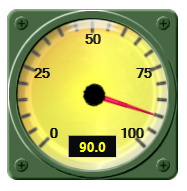 The Army Gauge widget represents the associated tag's value as a photorealistic meter, displaying both labeled major divisions and unlabeled minor divisions, the dial of which fluctuates according to the tag's value.