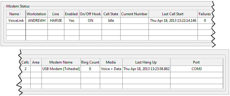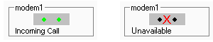 The SMS Modem Indicator widget displays a graphic of an active SMS modem control, showing the name of the associated SMS Appliance tag. It is similar to the Modem Indicator Widget, but displays SMS events rather than a continuous indication of the modem status.