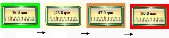 You may configure the indicator to use any color for each state, and to use any image (or none) to display the status. The default configuration is a color-coded rectangle. Note that the rectangle is solid - it will not interact with active orange as is the case with an Image Change widget.