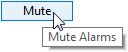 When clicked, this button will stop all alarm sounds (current and future). No alarm sounds will occur while this button is toggled on. Enabled only when there are alarms to mute and the current operator is permitted to use this feature.