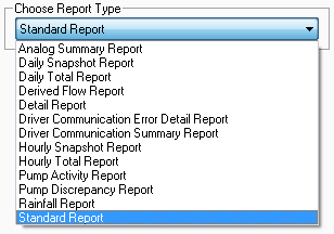 The Report Type widget is used to create a drop-down list from which operators can select the type of report they wish to generate.