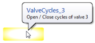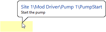 Most VTScada widgets contain a tag icon marker. This is the yellow symbol that blinks a question mark when the linked tag's Questionable flag is set, and an exclamation mark when the linked tag is using manual data. If a widget has not yet been linked to a tag, the indicator will show a star (asterisk).
