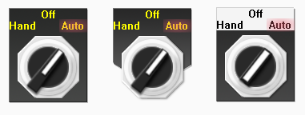 The Selector Switch widget is used to represent a Selector tag as either a 2-position or a 3-position switch. A common use is to create a Hand-Off-Auto selector.