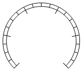 The Radial Scale Widget represents the associated tag's minimum and maximum scale range as a series of major and minor tick marks. The scale will always be round, regardless how the bounding box is stretched. In all cases, the smaller dimension of the bounding box will be used to set the diameter of the scale.