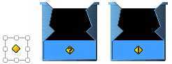 If the associated tag type includes an alarm setup then orange dots will appear in the object to indicate that one or both alarms are either not configured or not enabled. For tag types that have both high and low alarms as part of their definition, the upper and lower squares refer to the high and low alarms in that order.