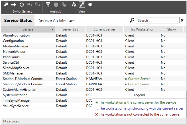 Refer to the Services Page for a detailed description of the features of the Service Status widget.