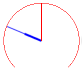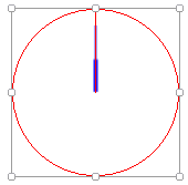 The radial indicator widget represents the associated tag's value as needle rotating about a fixed center. The red lines shown here are not visible to the operator. They show only in the Idea Studio, as a guide to help you place the indicator. The needle may be any image, any color.