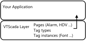 Every standard application is built on top of the VTScada System Layer application. All the pages you see in a new application, all of the default tags including Alarm Priorities, Fonts, and Menu Items, all the built-in reports, the Idea Studio with all of its widgets, and much more are defined in the VTScada layer and inherited by your application. You can change some of those tools, such as choosing a different font for one of the Font tags. Other things, such as the Alarm page and Operator Notes page, can be used but not changed.
