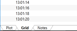 Values that make up the Historical Data Viewer (HDV) graph can be viewed in a table by clicking the Grid tab at the bottom of the page.