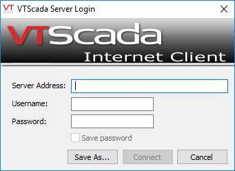 - After filling in the connection information fields of the VTScada Server Login dialog, click the "Save As…" button.