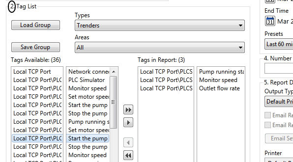 The tags belonging to the tag group are placed in the Tags In Report list.