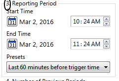 Leaving this field blank is the same as specifying "1 time period". Any larger value will cause the report to repeat for consecutive time periods of the same length set in step 3, where each iteration is for an earlier (previous) span of time.
