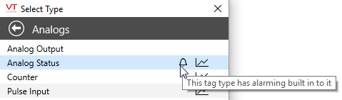 If the tag has a built-in alarm, that fact should be reflected as an icon in the Tag Browser.