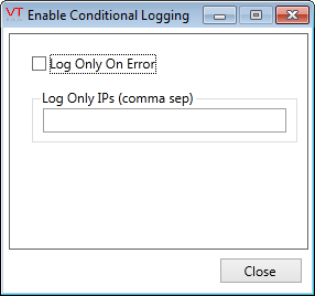 This dialog is displayed by selecting the Enable Conditional Logging button,