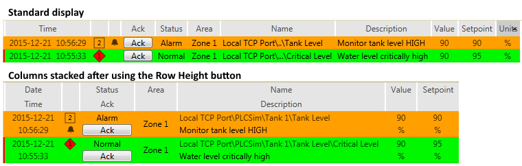 For example, an alarm popup uses the "PopupStandard" list format, which contains only one list: "Unacked". In the Alarm Page, the default is to show the AlarmStandard format, containing History, Active, Unacked, etc, but if an operator chooses to view only the System Event DB, then the "EventStandard" list format will be selected automatically limiting the selection to just the History list.