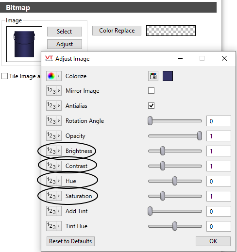 - Click the Adjust button to open the Adjust Image dialog.